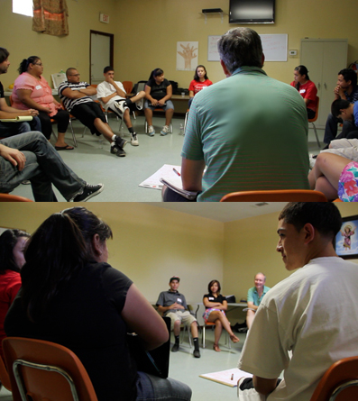The intention of the story circle was to bring students together to hear their side of the story and to explore possible alternatives and solutions to the issue; which will eventually be illustrated in a play, written by Michael John Garcés and directed by Peter Howard. The conversation began with “cultural mapping” activities that allowed the group to get to know each other and gave the facilitator an idea as to where to begin the dialogue. I noticed that this was a great opportunity for students who felt more comfortable speaking in smaller groups to express themselves without feeling pressured or intimidated.