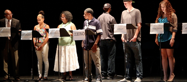 Last week, I had the opportunity to participate in Cornerstone Theater Company’s Talk It Out story circle, which featured students from the community of Arvin, California and their responses to personal experiences they’ve had with suspensions and expulsions throughout their education. As a student participant in Cornerstone’s 9th Institute Summer Residency, I have to admit that having received the background of story circles in class and then having the opportunity to witness one first hand definitely put everything into perspective.